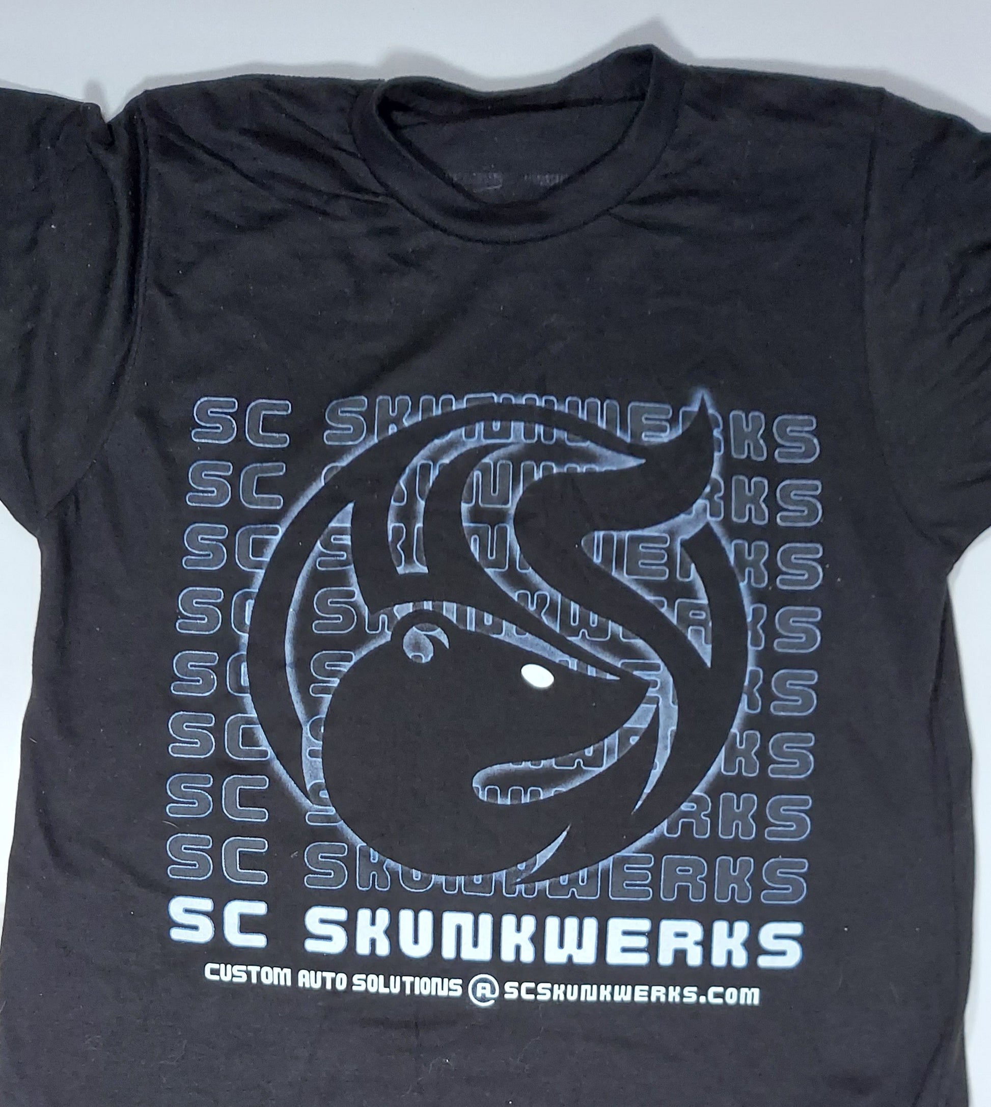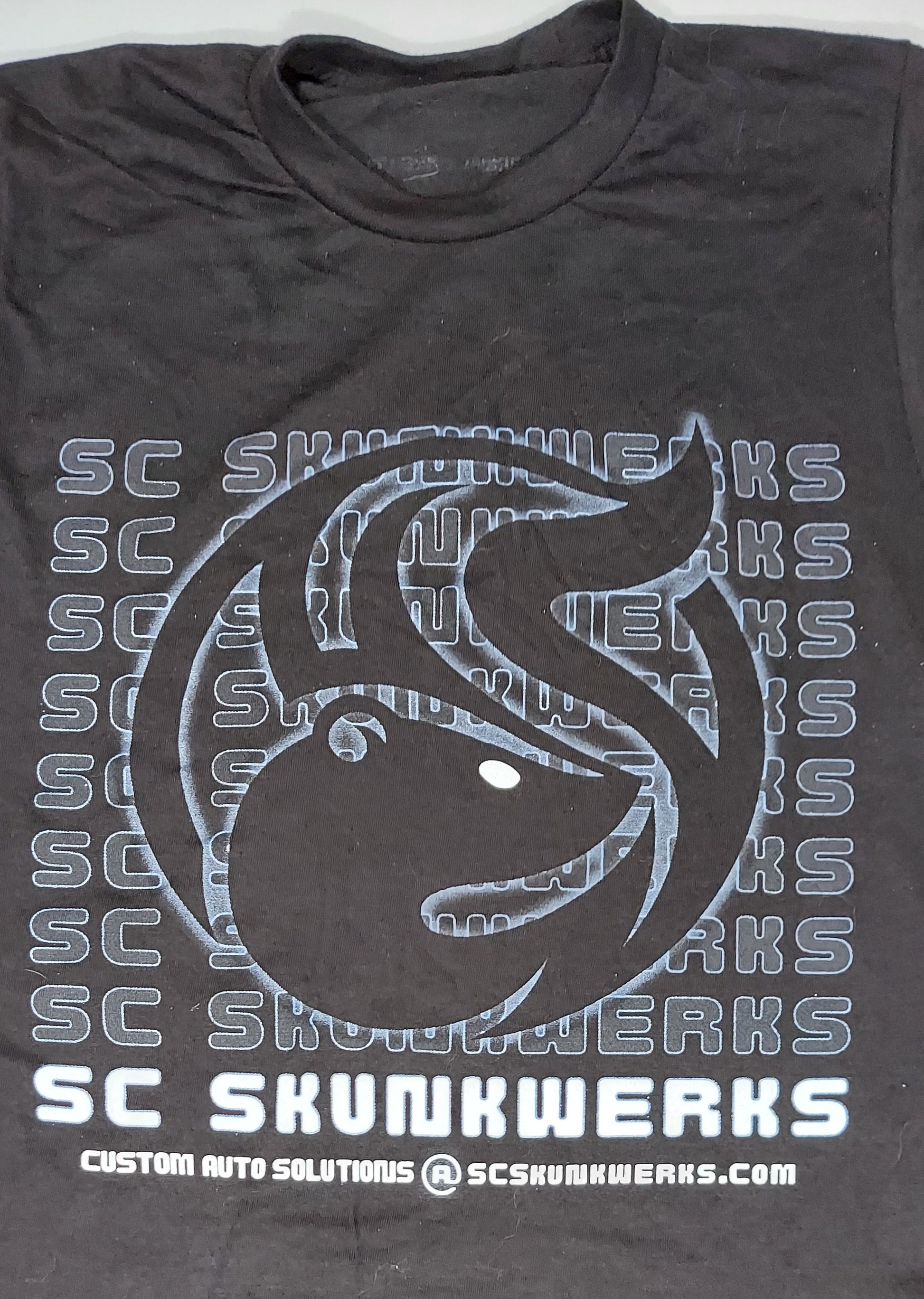 If you're looking for a way to show your SkunkWerks support at the local meet, or to help keep cool wrenching in the garage we have you covered. The SC SkunkWerks t-shirt is printed on 65/35 polyester/combed ring spun USA cotton blend for an thin and breathable fabric with ultra soft texture. Sizes are Unisex.